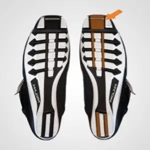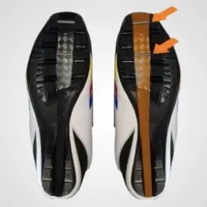 - Atomic eller Salomon med två metallsprintar (en längst fram och en mitt under skon) samt en kanal längs med undersidan av skon: Då ska du välja Salomon SNS Propulse eller Salomon SNS Pilot (I mitten på bilden nedan)